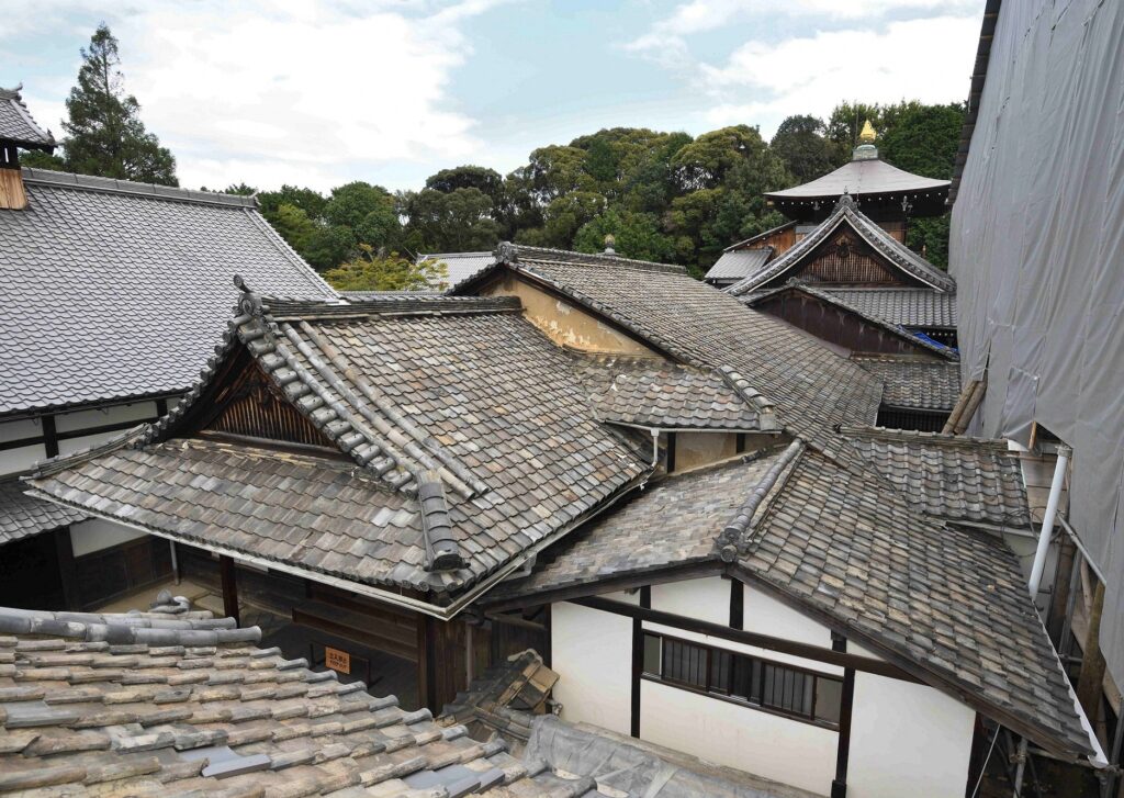 塔司寮(書院)の西側に建つ一間高麗門です。江戸後期の建立とされていましたが、今回の調査で17世紀に遡り得る建物であることがわかりました。文政火災による焼失を免れたものと考えられます。