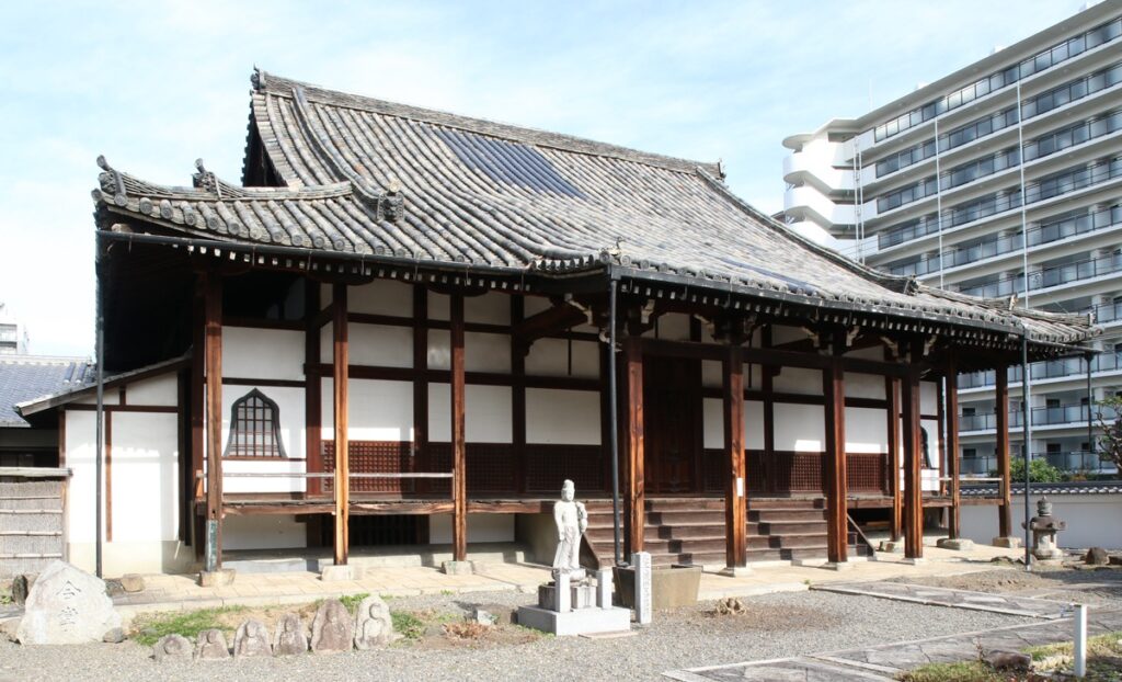 戦国時代の武将、黒田孝高(よしたか)(官兵衛)の妻、(てる)の菩提寺となっており、境内には墓所があります。また、かつて付近には遊郭があり、遊女たちの亡骸(なきがら)が投げ込まれたと伝わっています。