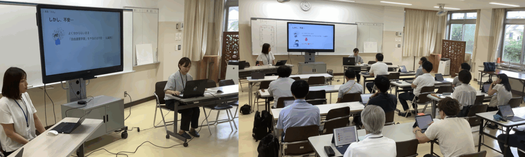 京田辺市教育委員会より、「生成AIの活用」について説明が行われ、実践発表ではエバンジェリストによる「個別最適な学びの充実」に向けた実践の発表が行われました。