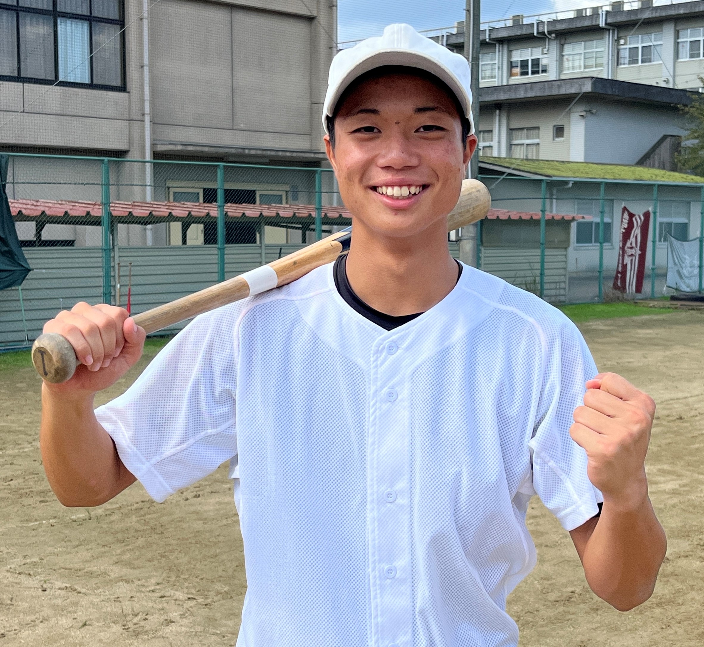 硬式野球部は「全大会初戦突破」を目標に活動しています。部員は選手11人、マネージャー4人の計15人と少数ですが、その少なさを強みに、学年の垣根を越えてコミュニケーションの取りやすいチームとなっています。試合では一つ一つのプレーに対して11人全員が声を出し、声で相手にプレッシャーを与えることを意識しています。また、「凡事徹底」もチーム目標として掲げています。これは挨拶などの当たり前のことを、誰よりも当たり前に実行するという意味です。挨拶は簡単なようで実は徹底できていない人も多い中、私たちはその細かな部分まで意識し、取り組んでいます。