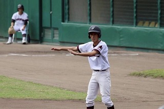 2回表、7番蘆田斗真が四球で出塁し、1番山下、2番四方、3番宮川の連続ヒットで3点を追加します。しかしその裏に死球やエラーで出塁を許し、連続ヒットも打たれ6点という大量点を許してしまいます。4-7で迎えた3回裏の守備では、エース蘆田悠馬が相手打線を三者凡退に抑え、流れを引き寄せます。4回表の攻撃、1番山下の死球から2番四方の送りバント、3番宮川の四球、そして4番蘆田悠馬の左中間へのヒットで1点追加、その後も四球が続きもう1点追加します。その裏の回では、再び得点を許し得点は6ー8。2点差で試合は後半戦へ進みます。