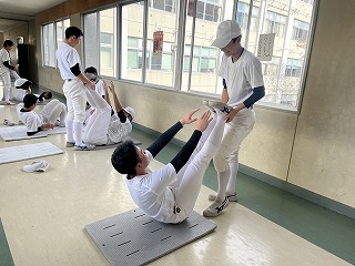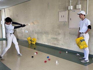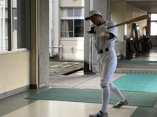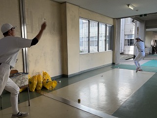 福知山高校には、室内練習場などのめぐまれた環境はありませんが、できる範囲で工夫をして練習に取り組んでいます。来週は年内最後の練習試合が予定されているので、この一週間しっかりと課題に向き合いレベルアップを図ります。