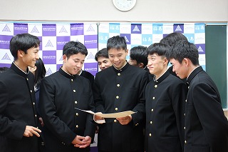 来年の春に開催される「第98回選抜高校野球大会」の21世紀枠京都府推薦校に福知山高校が選ばれました。11月17日(月)に本校の会議室にて表彰式があり、マネージャーを含む15人の生徒が参加しました。毎日新聞社の京都支局長から表彰を受け、京都府高等学校野球連盟の会長からは「野球を通して、魅力ある人間としてさらに大きく成長することを期待している」と激励の言葉をいただきました。