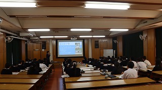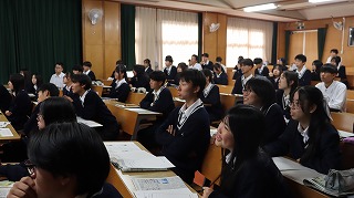 1年生対象の新聞活用セミナーが行われました。朝日新聞社の方を講師にお招きし、情報の大切さや何をモットーに記事を作るのかを教えていただきました。また、新聞の一面を読む際には、記事の要約が書かれている右上から、詳細が書かれている左下へと斜めに読むことで、記事の内容が分かりやすいと学びました。
