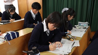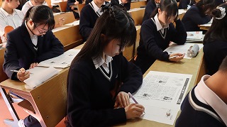 最後に、ワークとしてチャレンジ耕論200字まとめを行いました。これまで新聞をじっくり読む機会が少なかった生徒も、とても興味を持って読んでいました。