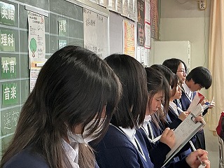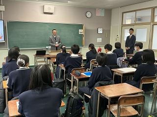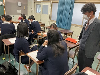 12月15日(月)に教員養成プログラムの一環として、福知山市立日新中学校を訪問しました。教員を志す本校生徒14名が参加し、授業見学および研修・交流会を行いました。特に交流会では、1つ1つの授業の組み立て方、これからの教員に求められること、高校時代にやっておいた方がいいことなどを、中学校の先生から熱く語っていただきました。