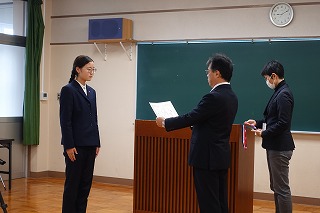 その後、活躍した部活動等の伝達表彰が行われました。