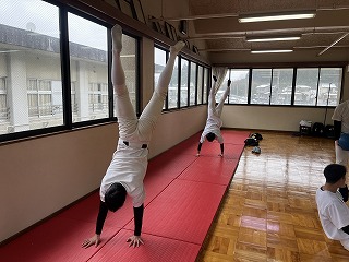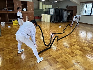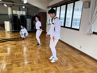 今年の冬は雪が多く、建国記念の日の2月11日(水・祝)も校舎内や武道場を利用して練習に取り組みました。