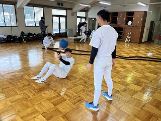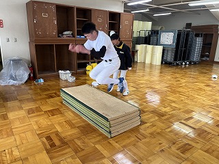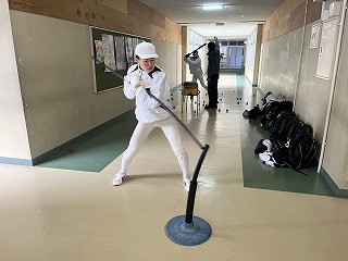 身体の操作性を高めるために、全身を使った動きをトレーニングに取り入れたり、速球対策のために下半身の動作を重点的に確認し、そのあと落下ティーに取り組んだり、日々工夫しながら練習に励んでいます。