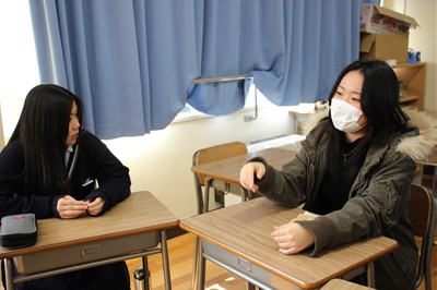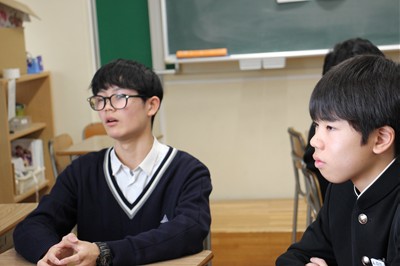 3月12日(木)に、高校を卒業したばかりの附属中6期生と、中学校の卒業を控えた9期生との交流会が行われました。