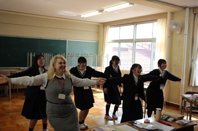 生徒は各グループに分かれ、外国人講師からレッスンを受けました。最初は緊張した面持ちの生徒もいましたが、少しずつ自分の考えを英語で表現することに慣れ、2日目には全員がショートプレゼンテーションに挑みました。最初から積極的に英語でコミュニケーションを図ろうとする生徒もおり、休み時間には講師の先生とダンスを踊っている生徒も見受けられました。