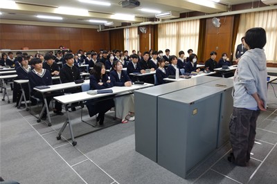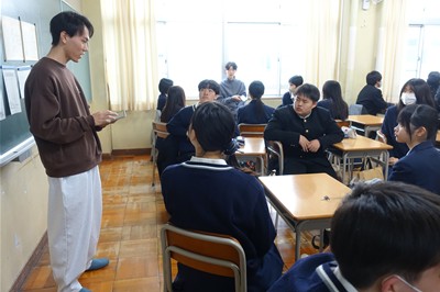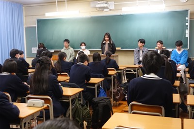 3月18日(水)、2年生と3年生の交流会が行われました。卒業した3年生が、進路が決まるまでどのように頑張ってきたか、不安な時は何をしていたかなど、自分の高校生活を2年生に語る取組です。当日は、一人一人がそれぞれの思いを発表したり、座談会のようにグループごとに話をしたりしていました。2年生も3年生も、「もっと話したい!」という気持ちにあふれていて、交流会が終了する直前まで、たくさん話をしていました。2年生の不安や疑問に、3年生が優しく答えていて、温かい雰囲気に包まれていました。