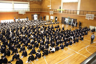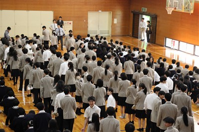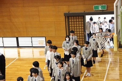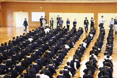 4月27日(月)、避難訓練が行われました。震度6強の地震が起こったという想定で、第一体育館に避難しました。首席副校長先生からは、「静かに移動し、集合した後も指示が通りやすい状況で、素晴らしい態度だった」との講評がありました。