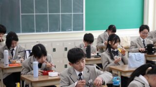 午前中の授業を終えた1年生が、お弁当を食べています。初めての中学校生活で緊張もある中、友達とお弁当を広げる時間は、心がおちつく大切なひとときです。お弁当の時間、教室には和やかな雰囲気が広がっています。これから中学校生活にも慣れ、少しずつ...