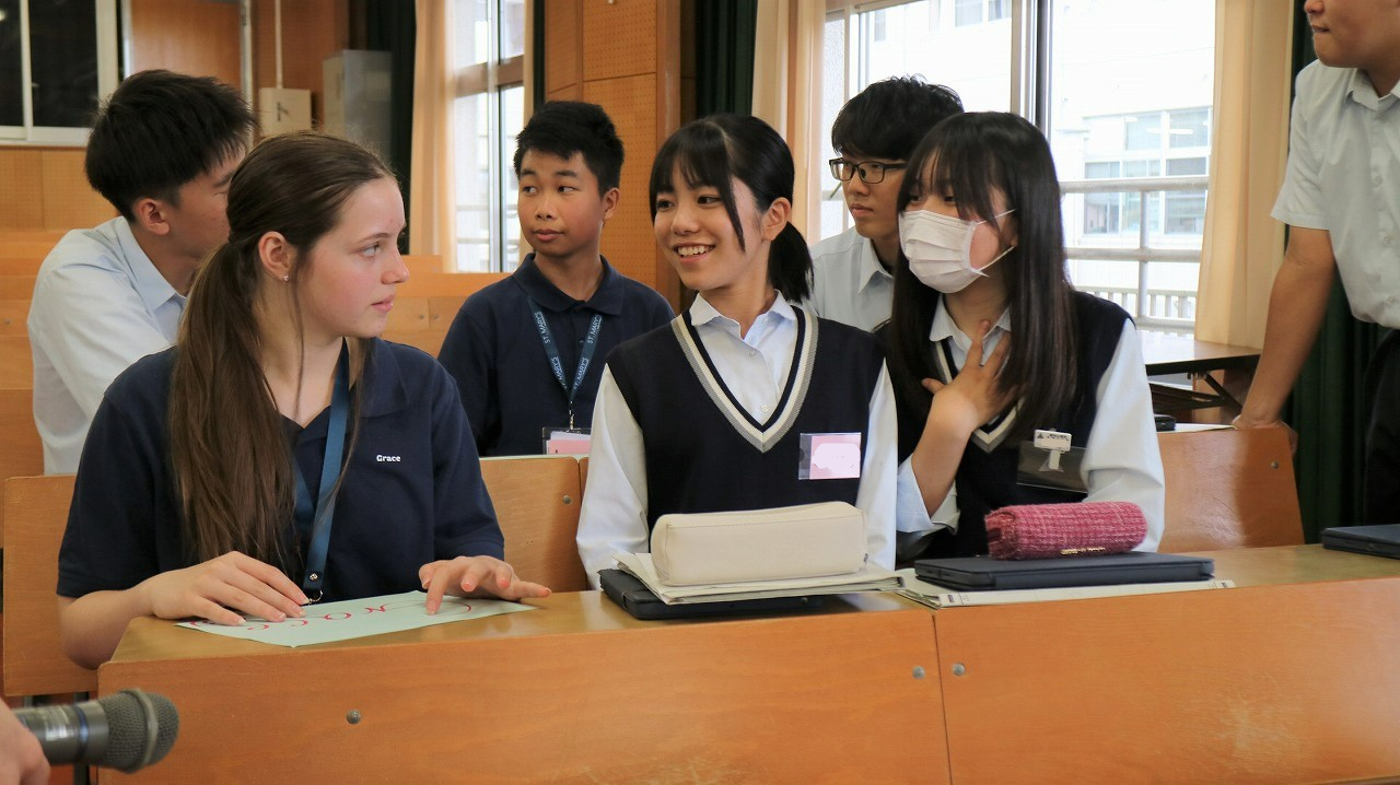 3年生は学校生活についてお互いにプレゼンテーションをしました。校外学習で大阪・関西万博に行ったことや、みらい楽で地元のお茶を広める取り組みなど、校外でもさまざまな活動をしていることに驚かれていました。また、オーストラリアの学校行事の規模の大きさなど、日本との違いに新たな発見をしていました。