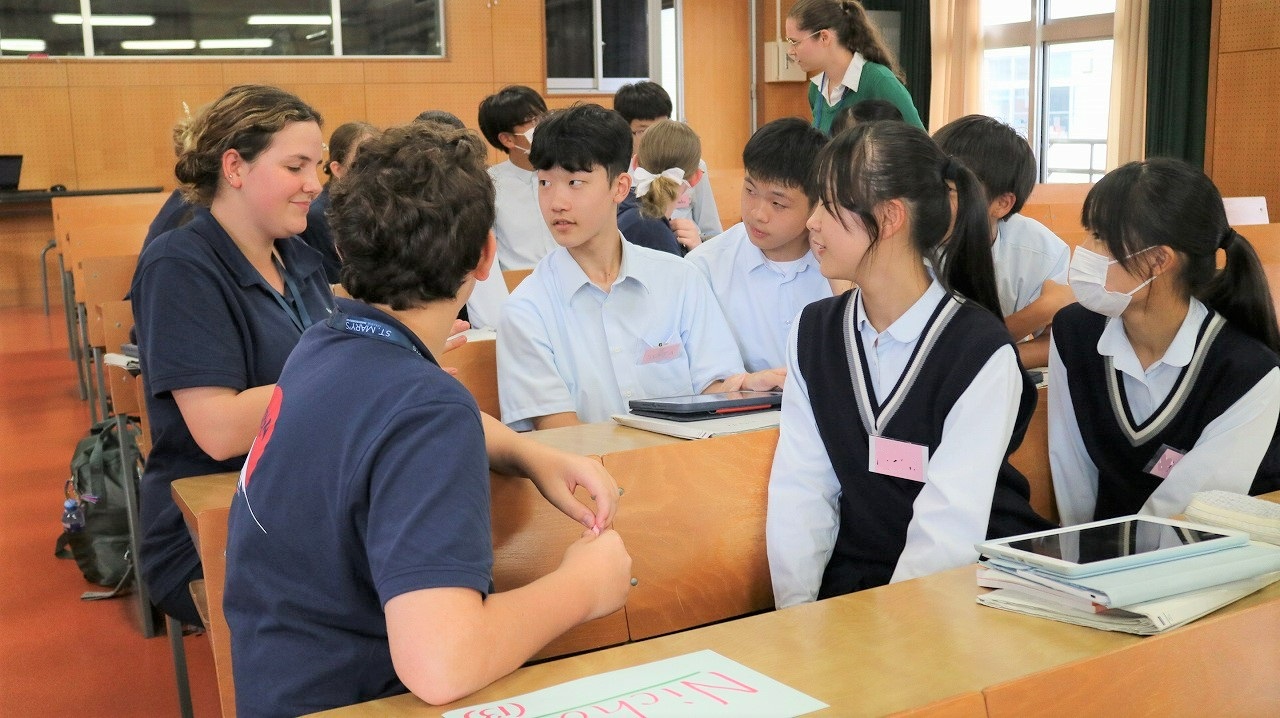 9月19日(金)、オーストラリアのセントメアリーズカレッジから、13歳から16歳の生徒14名が来校し、半日の国際交流を行いました。