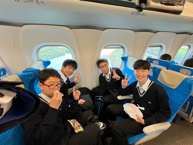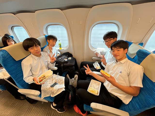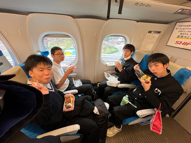 新幹線で移動中 R7 研修旅行 Twitter Facebook はてブ Pocket LINE コピー 2025.11.11 カードゲームをしたり、車窓からの景色を楽しんだりしながら、それぞれが楽しみを見つけています。写真は食事の様子。お腹を満たして、午後からの研修メニューに備えます。 Post Views: 296