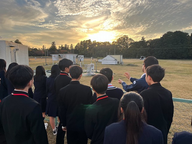 はじめに、気象庁が行っている仕事の概要や、気象研究所での研究内容について説明を受けました。続いて、最新の観測技術として注目されている「フェーズドアレイレーダー(高性能レーダー)」の見学をしました。