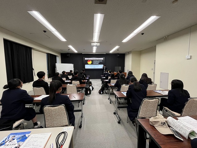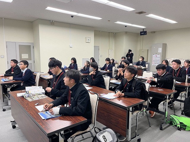 講義では、福知山が一時的に日本最高気温を記録したことなど、身近な話題も交えながらお話しいただき、生徒たちは熱心に耳を傾けていました。