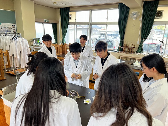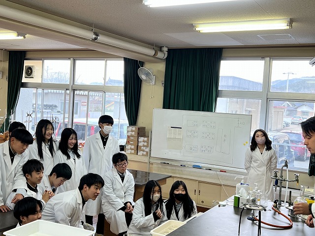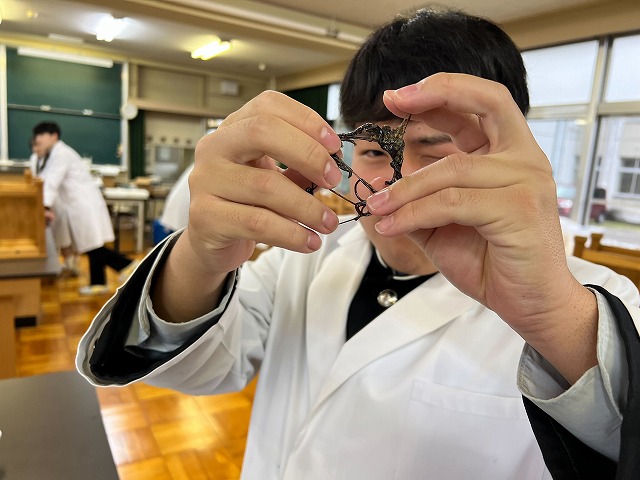 生徒たちは、形状や硬さ、弾性などの違いを比較しながら観察を進めました。「分子構造の違いによって物性が変わるのが面白い。」という声が聞かれました。