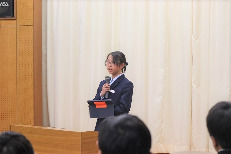 3月18日(水)の中学集会では、3学期の総括が行われました。