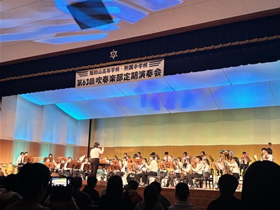 第1ステージでは吹奏楽曲を、第2ステージでは「ブラストラベル」と題して、ポップスをお送りしました。また、ロビーでは茶道部のお点前が、幕間では音楽部の発表があり、近年で一番盛り上がった定期演奏会でした。約270名に御来場いただきました。ありがとうございました。