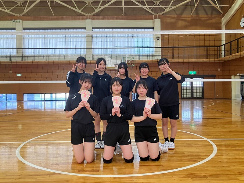 バレーボール部(女子)3月31日(火)附属中女子バレーボール部の卒部式を行いました。卒部生(9期生)は入学当初、たった1人しか同学年に部員はいませんでしたが、2年次12月より2名が新たに加入し、3名となりました。部員数が少ない中でしたが、大会に出場するために合同チームを組み、練習に励んできました。卒部式では、卒部生は後輩たちと一緒にミニゲームをしてバレーボールを楽しみ、最後に後輩たちからの記念品を受け取りました。