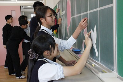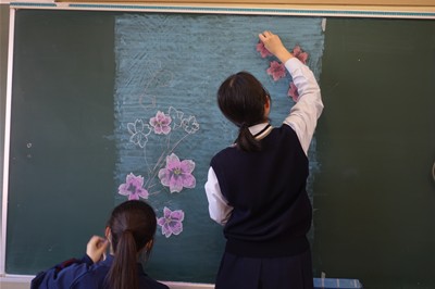 そんな思いで中学1年生と高校1年生の教室、全7教室の黒板を黒板アートで彩りました。