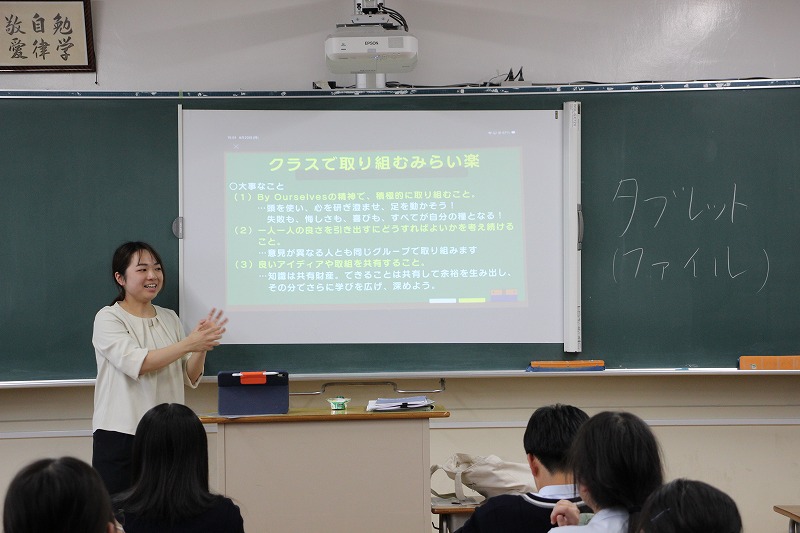 3年生の「みらい楽」がスタートしました。今年度の「みらい楽」は、生徒が身の回りの出来事や地域の課題に目を向けながら、仲間と共に課題を見つけ、考え、実際に行動してみることを中心に活動します。机上の学習では得られにくい気づきの瞬間を大事にしていきます。