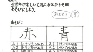 赤チーム・青チームそれぞれ20班に分かれ、教室ではトランプや絵しりとり、ハンカチ落としなどのゲームを楽...
