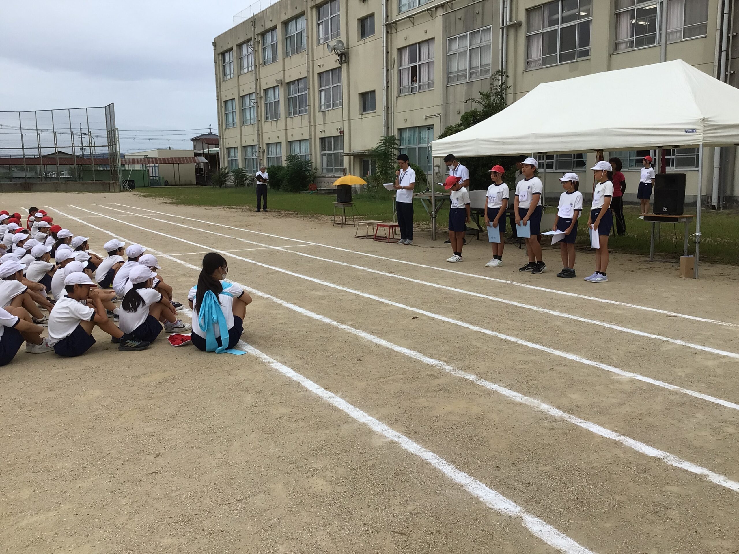 9月25日(火)の2・3校時に、運動会の予行練習を行いました。天気が心配されましたが、曇り空のもと、少し蒸し暑さはあったものの、先週の残暑と比べると比較的過ごしやすい気候の中で実施することができました。