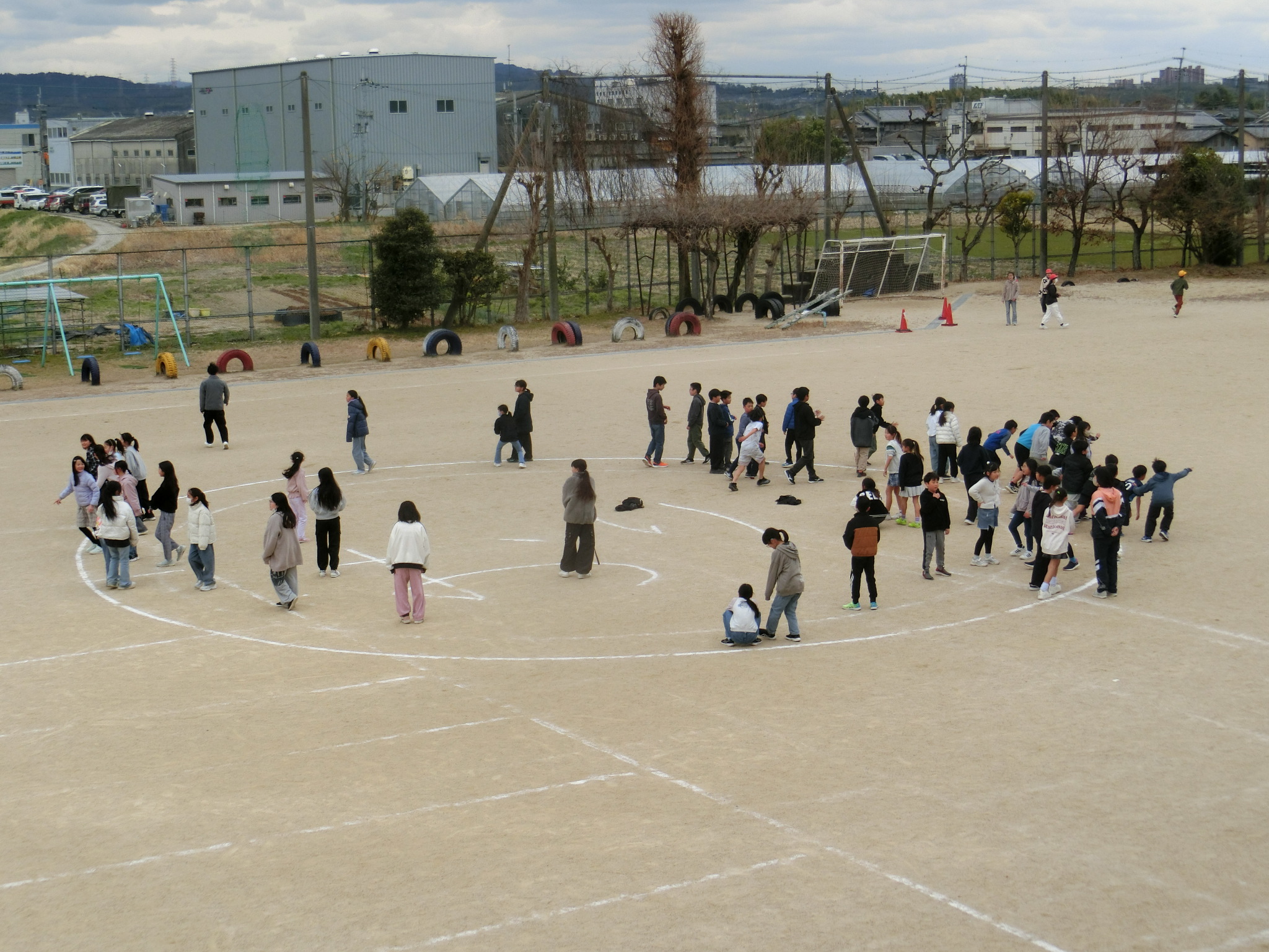この日は運動場で元気いっぱいに交流し、にぎやかな時間となりました。4・5年生は、逃げる6年生を一生懸命追いかけたり、作戦を考えながら仲間と協力したりして、笑顔いっぱいで遊んでいました。6年生も下級生の様子を見守りながら、優しく声をかけたり、楽しく追いかけたり逃げたりと、頼もしく温かい姿が見られました。
