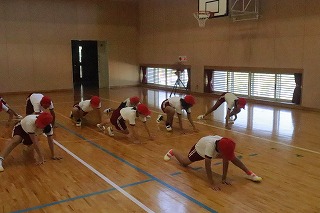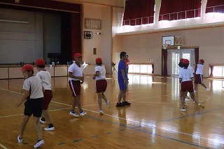 高学年を対象に、明治国際医療大学から講師を招いて指導を受けました。今回は関節の動かし方や、リズム感について体感し、運動の能力を少しでも上げるポイントを指導していただきました。暑い中でしたが、楽しみながら体を動かすことができました。
