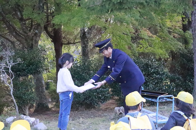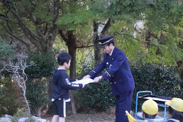 園部消防署から署長様をはじめ3名の方に来ていただき、直接賞状を授与していただきました。