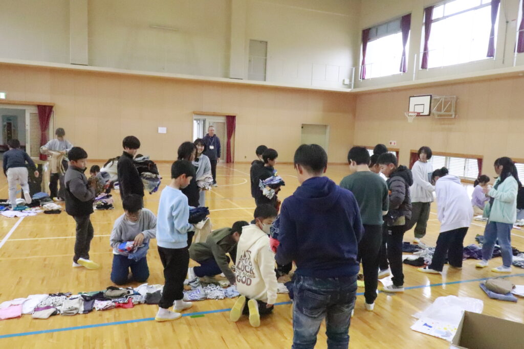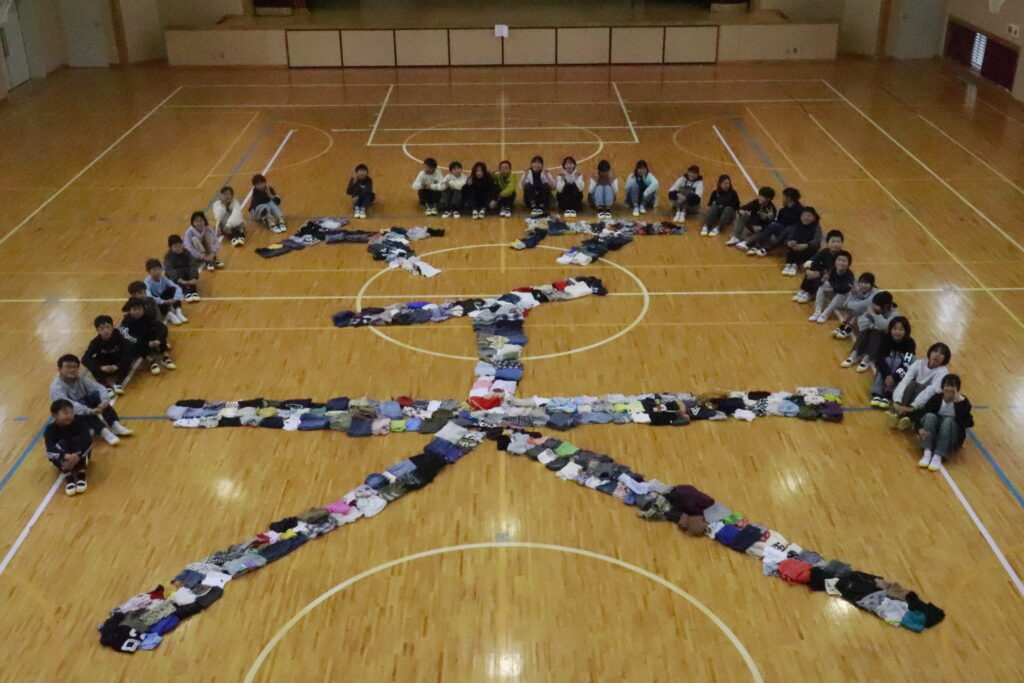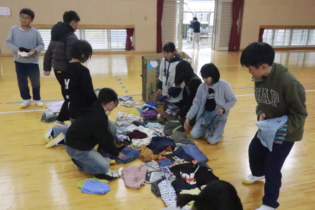 本校児童会では、ユニクロが国連難民高等弁務官事務所(UNHCR)と連携して推進されている「届けよう、服のチカラ」プロジェクトに参加し、これまで胡麻保育所、郵便局等地域の施設、殿田小学校等に児童からお願いに行って呼びかけるなど活動に取り組んでいました。