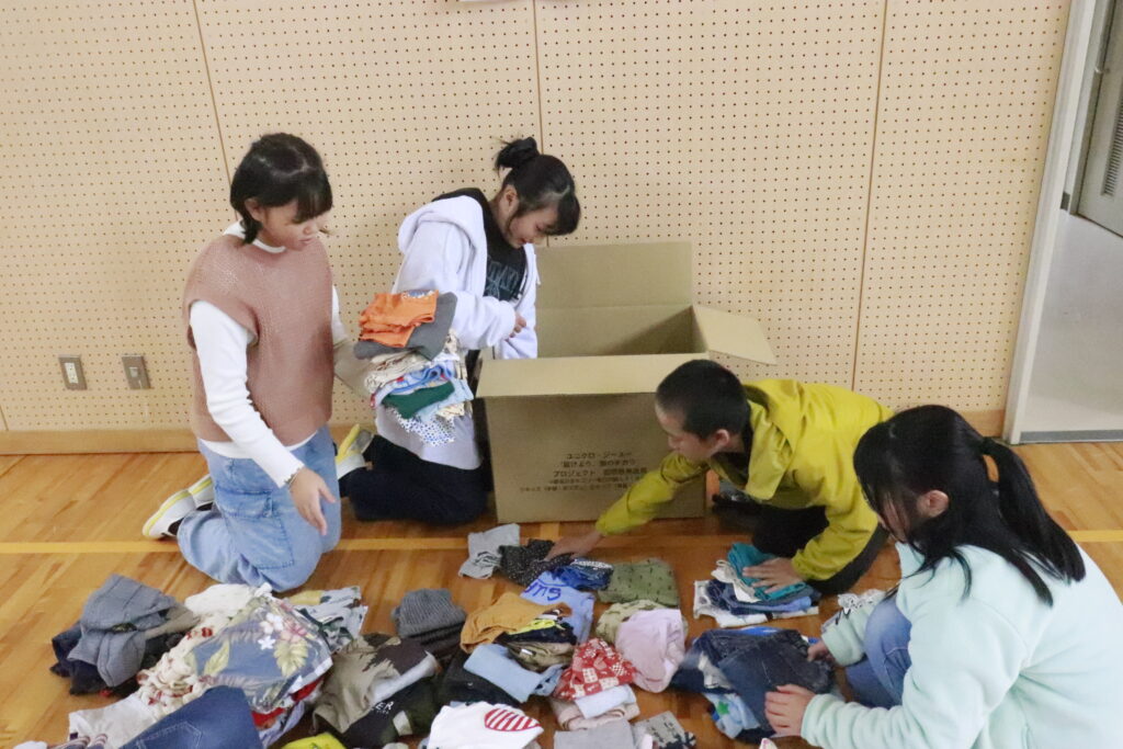 そして今日、5・6年生の児童が服を仕分け、枚数を数えて段ボールに詰めました。