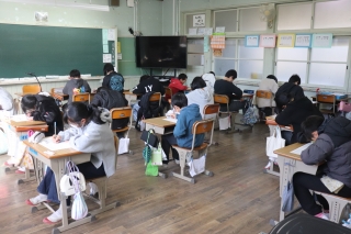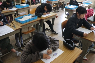 今日は、水曜日の算数大会に続き、国語大会を実施しました。子ども達は、この日に向けて練習を重ねてきました。開始前には、「緊張してきた。」という声も聞かれました。これは、頑張ろうという意欲の表れでもあります。どの学年も真剣に問題に向き合い、問題に取り組む姿が見られました。国語大会を終えて、手ごたえがあった子も、もう少しできたと思った子もいるかと思います。冬休みまであと2週間余りありますので、十分に復習をしていきたいと思います。