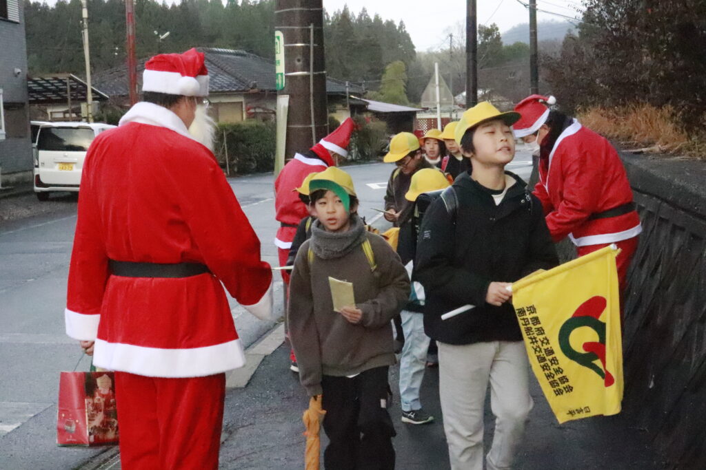 本日をもって、長かった2学期が終了しました。登校時、「胡麻地区防犯協議会サンタ」様が、児童全員にプレゼントを配ってくださり、朝から児童は笑顔でルンルン気分でした。