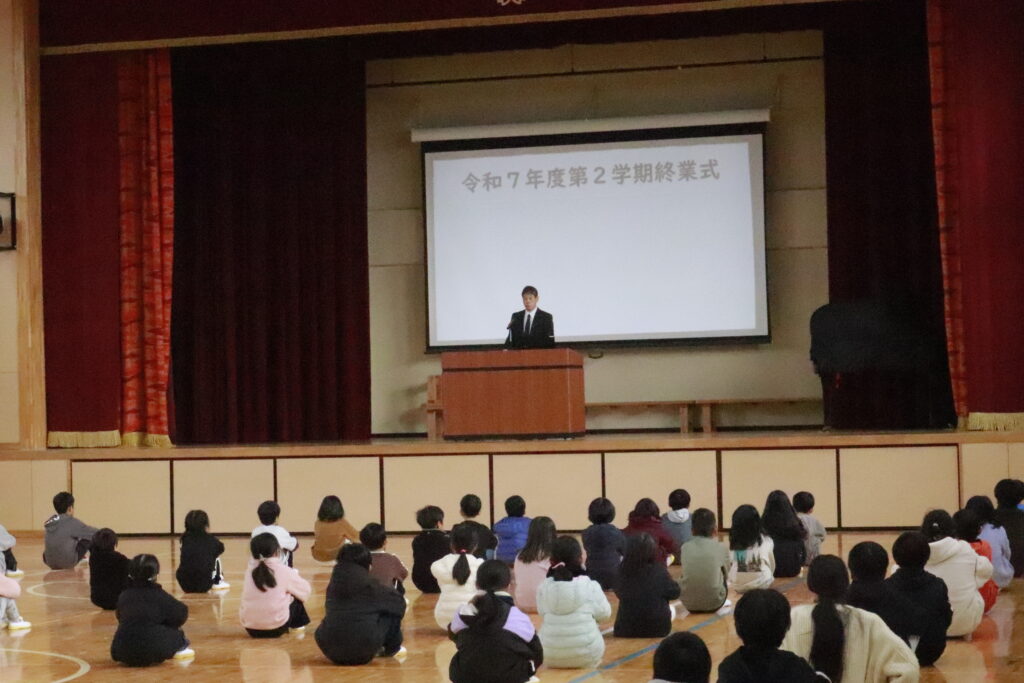 始業式には、校長先生から「一年の計は元旦にあり」と、来年に向けてのお話をとても良い姿勢で聞くことができ、日々の学習や大きな行事を通して、成長した児童の姿を見ることができました。