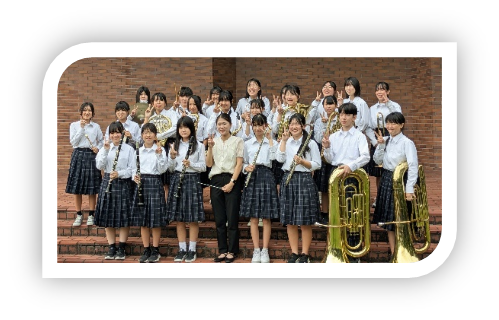 後半は、吹奏楽部が演奏を行いました。3年生にとっては集大成となる舞台で思い入れもひと際強いものを感じました。聴く人たちを楽しませる工夫やソロ演奏の見せ場をつくるなど、温かい演奏会となりました。また、アンコールでは生徒代表+教員チームが、吹奏楽部の演奏に合わせてダンスを披露し会場を大いに盛り上げました。コンクールや演奏会、地域の行事など、様々な場面で演奏を披露してきた吹奏楽部の皆さん、お疲れさまでした。素晴らしい演奏をありがとう!