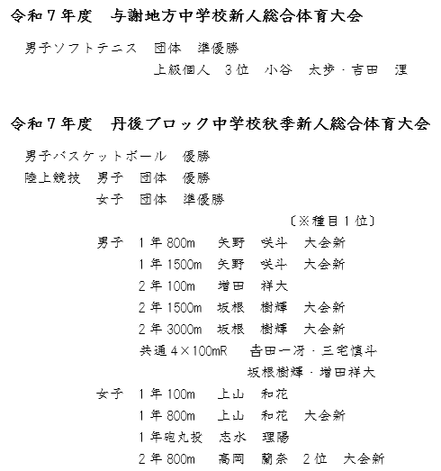 丹後ブロック秋季新人・与謝地方新人総体 結果