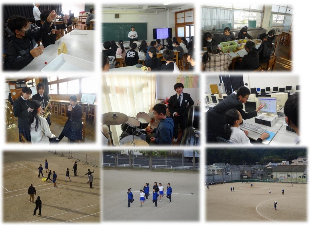 令和8年度入学予定の小学校6年生を対象に中学校への体験入学・部活動体験を実施しました。授業では「英語」「理科」のどちらかを選択して中学校の授業体験を行いました。また、事前に希望をとりまとめ部活動体験を1時間ほど実施しました。天候にも恵まれ、グラウンド種目もいつも通りの内容を実施することができました。小学校とは違う一面を実際に見たり、感じたりできたのではないでしょうか。12月には2回目の部活動体験を実施する予定です。