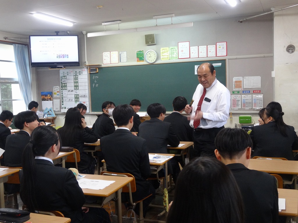 7月8日に2年生が家庭科の時間に和装教室を行いました。みやび流和装道 宗家 牛田育絵 講師を始め、他8名の講師の方にお世話になり、きものの衣服史・きものの種類・浴衣の構造と名称など和服の基本を教えていただきました。また、浴衣を自分で着て、立礼などの所作実技も教えていただきました。