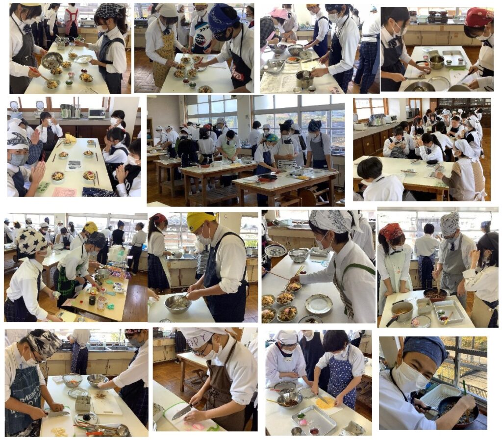 2年生及び支援学級の生徒たちは、家庭科の授業で京都府北部の郷土料理である丹後のばら寿司について学習し、調理実習を行いました。各日6名の食生活改善推進員の皆様にお世話になり、丹後のばら寿司の歴史、作り方の手順やコツなどを詳しく教えてもらい、生徒たちも意欲的に取り組みました。