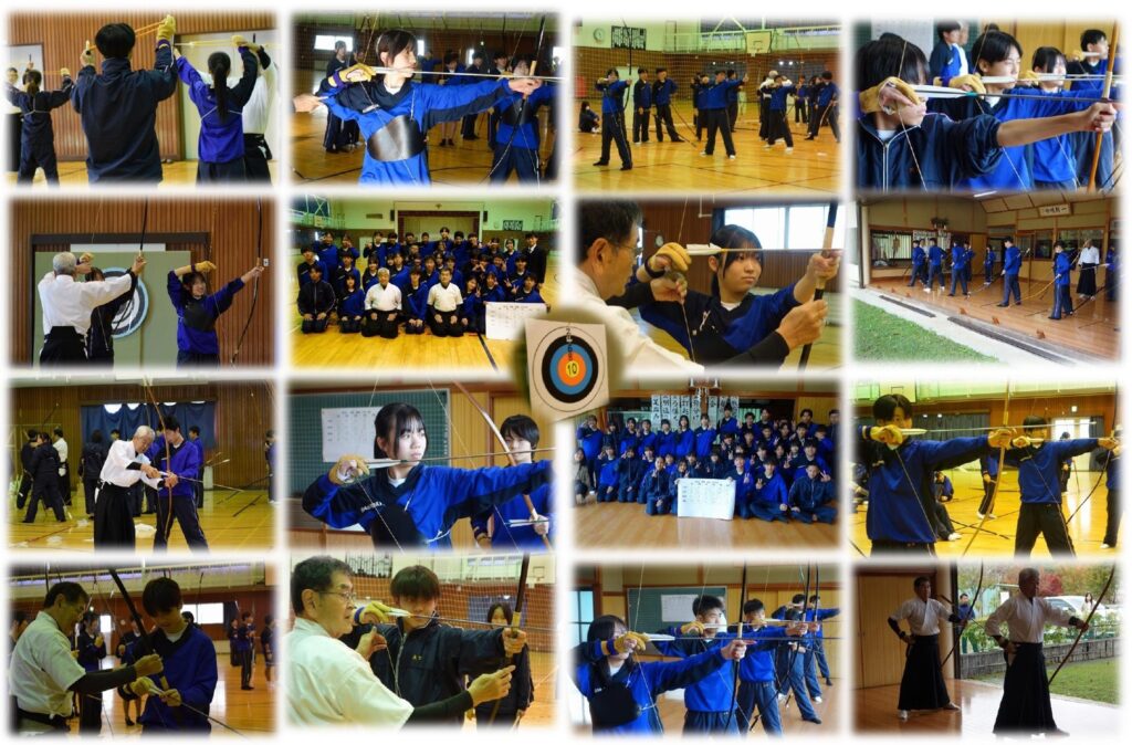 2名の講師の先生にご指導いただき弓道の授業を実施しました。全8時間の計画で、最後の2時間は岩滝弓道場で納射をしました。