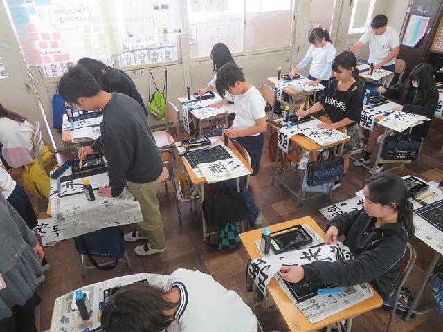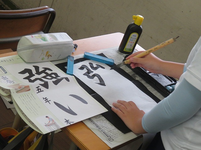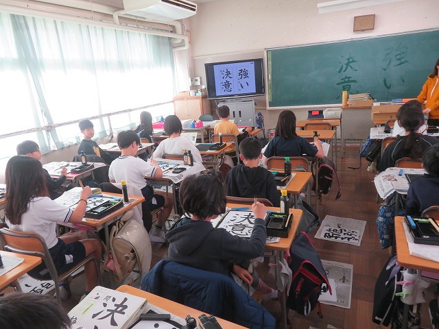 一年生・二年生は硬筆、三年生以上は毛筆に取り組み、新しい年への決意や願いを、一文字一文字に心を込めて表しました。
