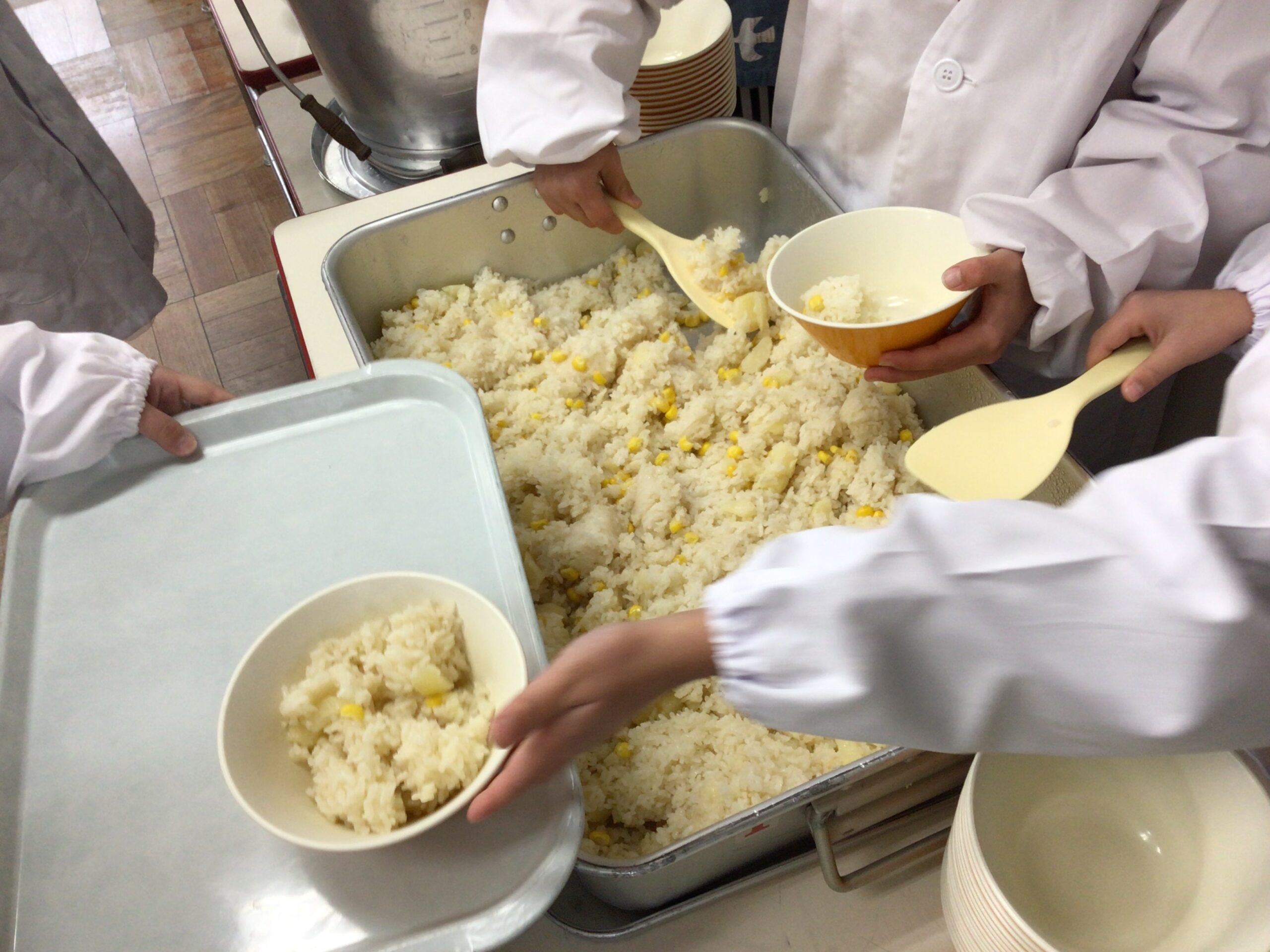 じゃがバタコーンごはんは、コーンの甘味を気に入っている児童が多かったです。