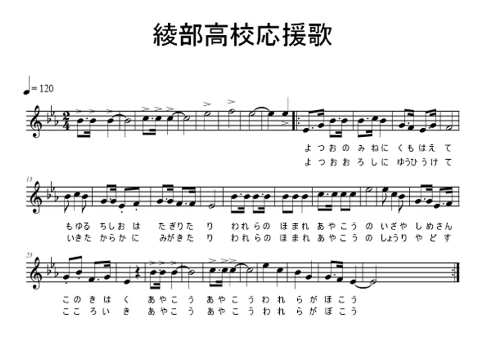 PTAより PTAより Twitter Facebook はてブ Pocket LINE コピー 2025.12.12 2023.01.06 綾部高校応援歌です 現在、PTA広報委員は「綾部高校応援歌復活プロジェクト」という活動をされています。その活動で綾部高校応援歌の主旋律がわかりましたので、曲にしてみました。お聴きください。 Post Views: 2,459 卒業生の方 Post Views: 883