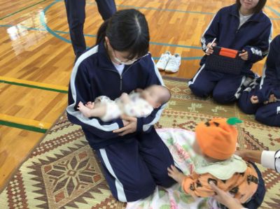 10月21日(火)に2年「家庭総合」で乳児ふれあい体験を行いました。