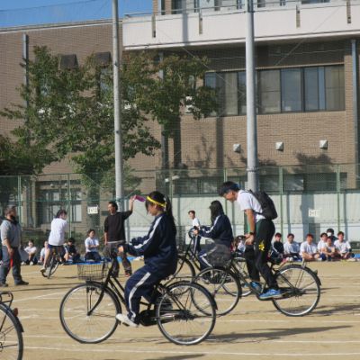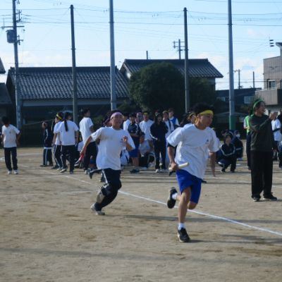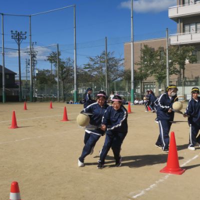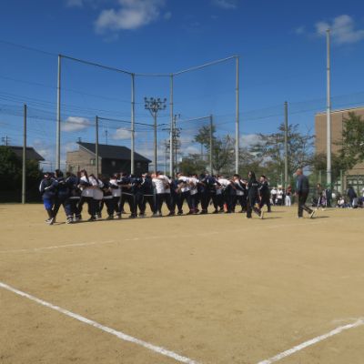 天候にも恵まれ、体育委員長による準備体操から始まり、クラス全員での大縄跳びや〇人〇脚、学年対抗での綱引き、ムカデリレーやボール運び競走、回旋競走、自転車遅乗り競走、障害物競走、最終種目のクラス対抗リレーまでどの種目も真剣に取り組み、大いに盛り上がっていました。